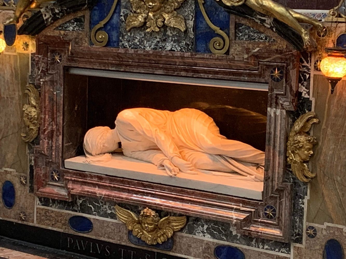 Today we celebrate two of the greatest mothers of Rome: St. Monica, the mother of St. Augustine and patron saint of mothers, and St. Helena, mother of Constantine, who helped her son build the first Christian sites in Rome just after the legalization of public Christian worship. We spend the morning at the Basilica of St. Augustine and pray at the tomb of St. Monica. We note the depictions of lay women and mothers dotting the church: a Raphael statue of Sts. Anne, Mary, and the child Jesus; a statue of St. Rita, a painting of St. Catherine of Alexandria, a fresco of Queen Esther, and a statue entitled “Our Lady of Childbirth,” where Roman moms leave written names, baby booties and photos of their children who have been safely delivered. After lunch and a brief visit to Saint Agnes’ Church, we head out to the sites associated with St. Helena: the Lateran Basilica, and the Holy Steps which are believed to have been walked by Christ himself and which Helena brought to Rome. What better place and time to renew our family vows and commit our best selves to the formation of our domestic churches–which are the very heartbeat of the Church.
